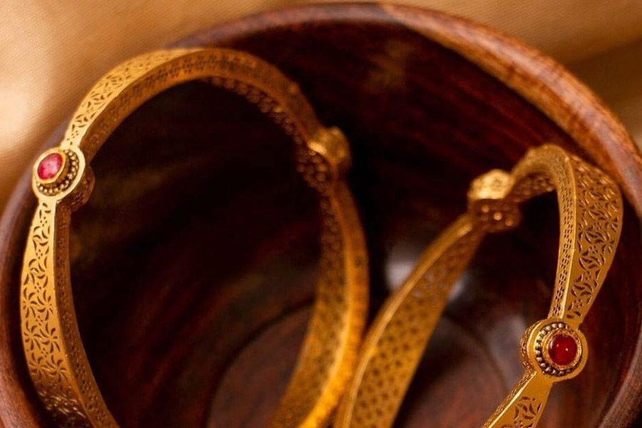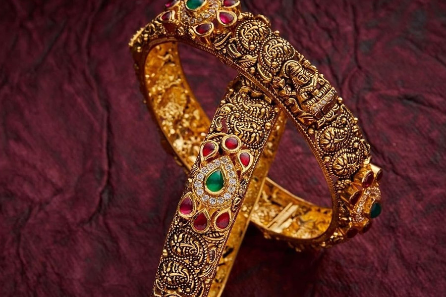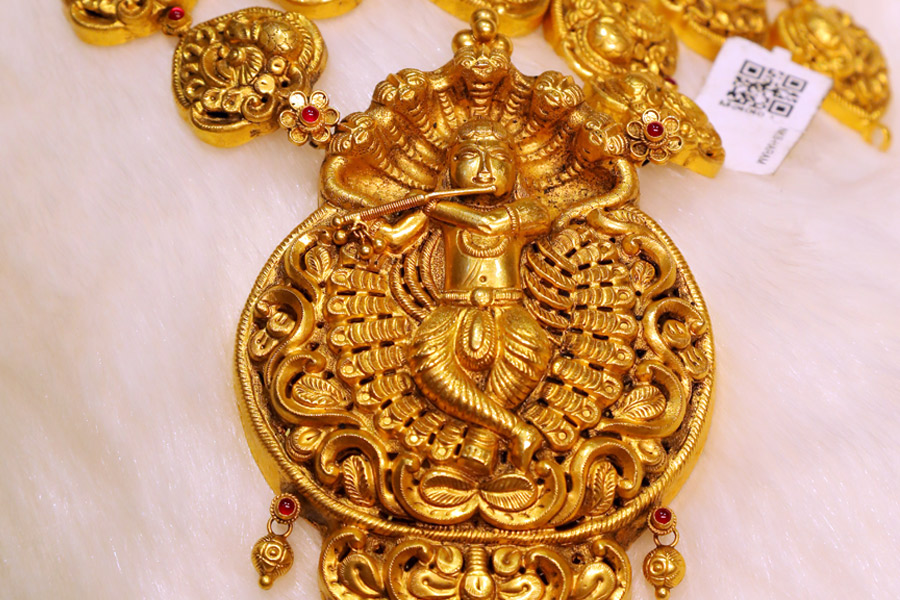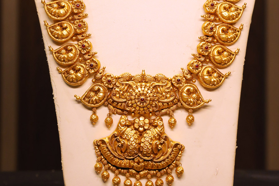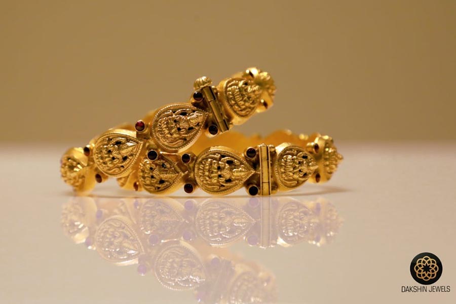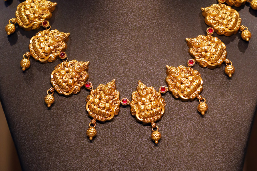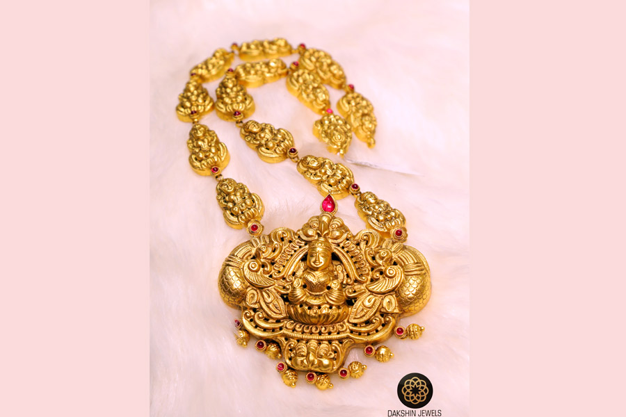 Dakshin jewels presents the latest innovative designs with limitless vitality; richly detailed gold antique jewellery for you.